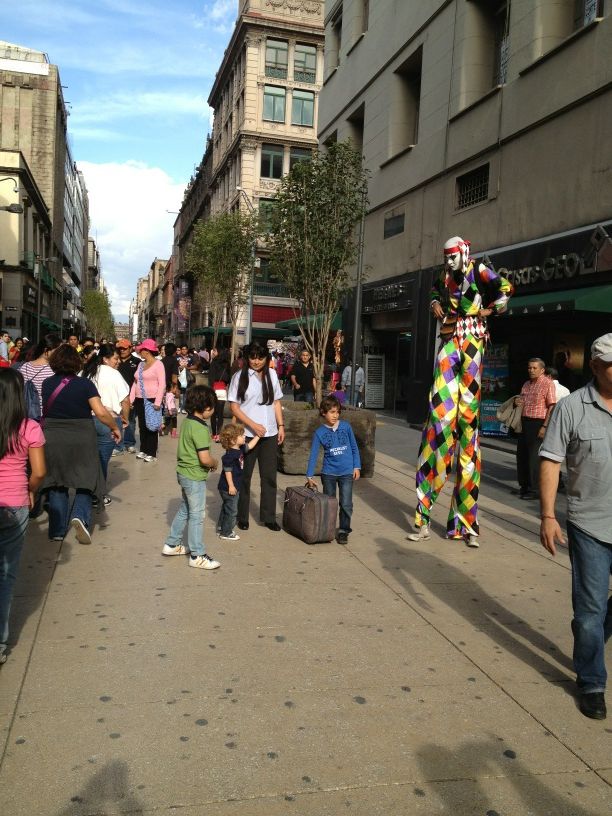Victoria Ruffo en plena caracterizacion de “Refugio” en Corona de Lagrimas graba las escenas del origen. Vemos a Victoria con pelo largo, lacio y con flequito con sus tres hijos caminando por varios puntos de la capital Mexicana. En una de esas hasta se ve Bellas Artes de fondo.